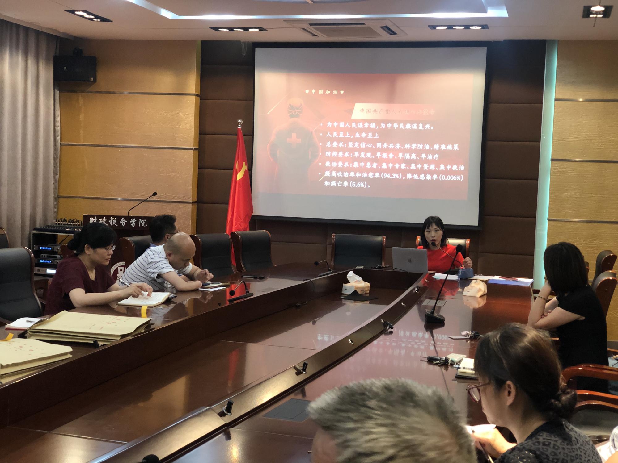 教工第一党支部书记童幼雏组织全体支部成员进行了以“悟中国抗疫精神 筑红色防火墙”为主题的高校党组织战“疫”专题党课暨组织生活会。