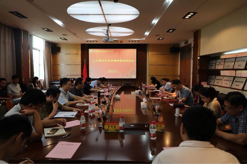 党委理论学习中心组(扩大)在学院楼307会议室召开党的二十届三中全会精神专题学习会。学习会由学院党委书记童玉玲主持。学院领导班子、各研究院负责人、系主任参加学习会并作主题发言。