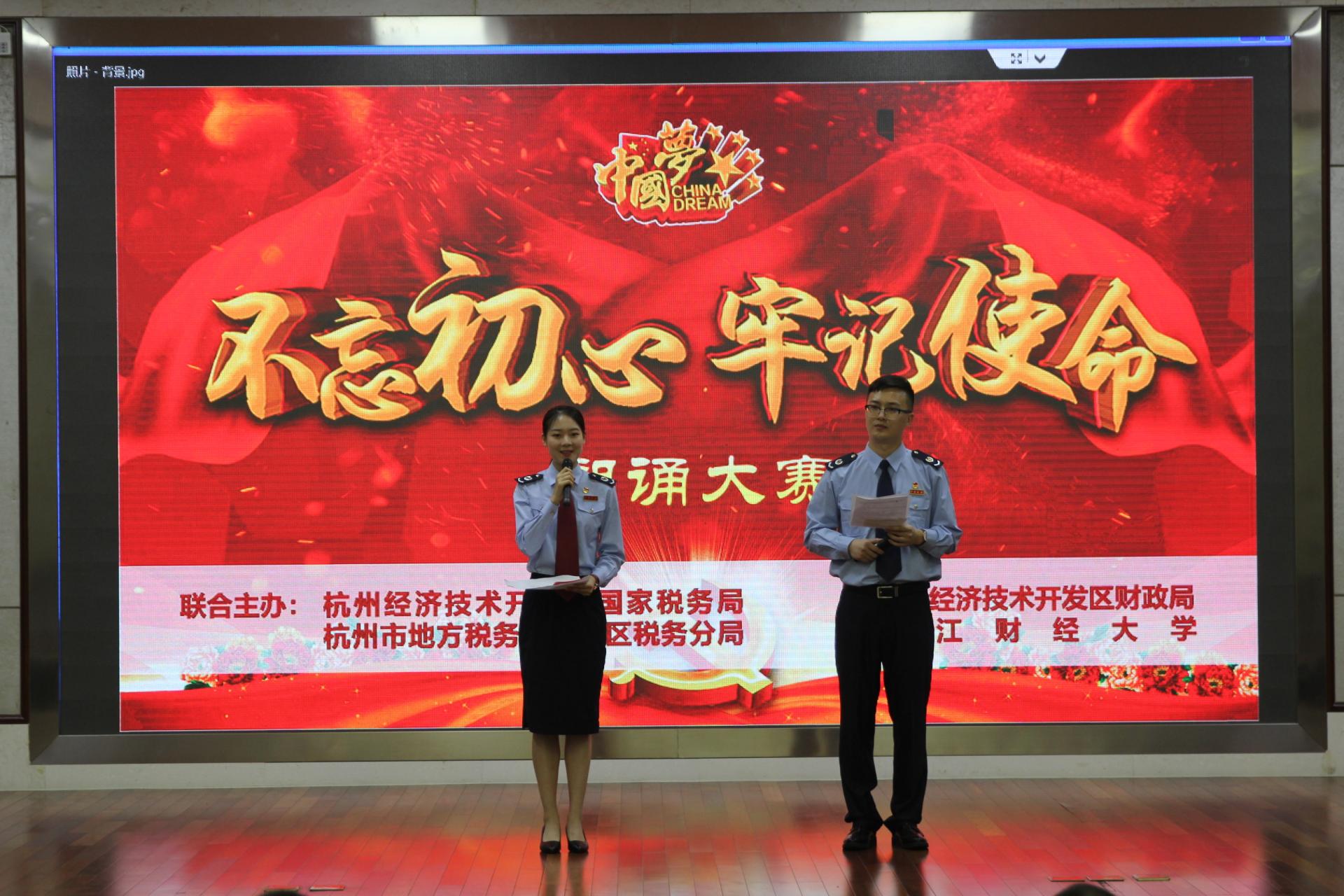 与杭州经济技术开发区国家税务局、杭州经济技术开发区财政局、杭州市地方税务局开发区税务分局联合举办了主题为“不忘初心·牢记使命”的党日活动,活动以诗歌朗诵的形式进行。区局领导班子成员、全系统干部职工、CBA直播线上看