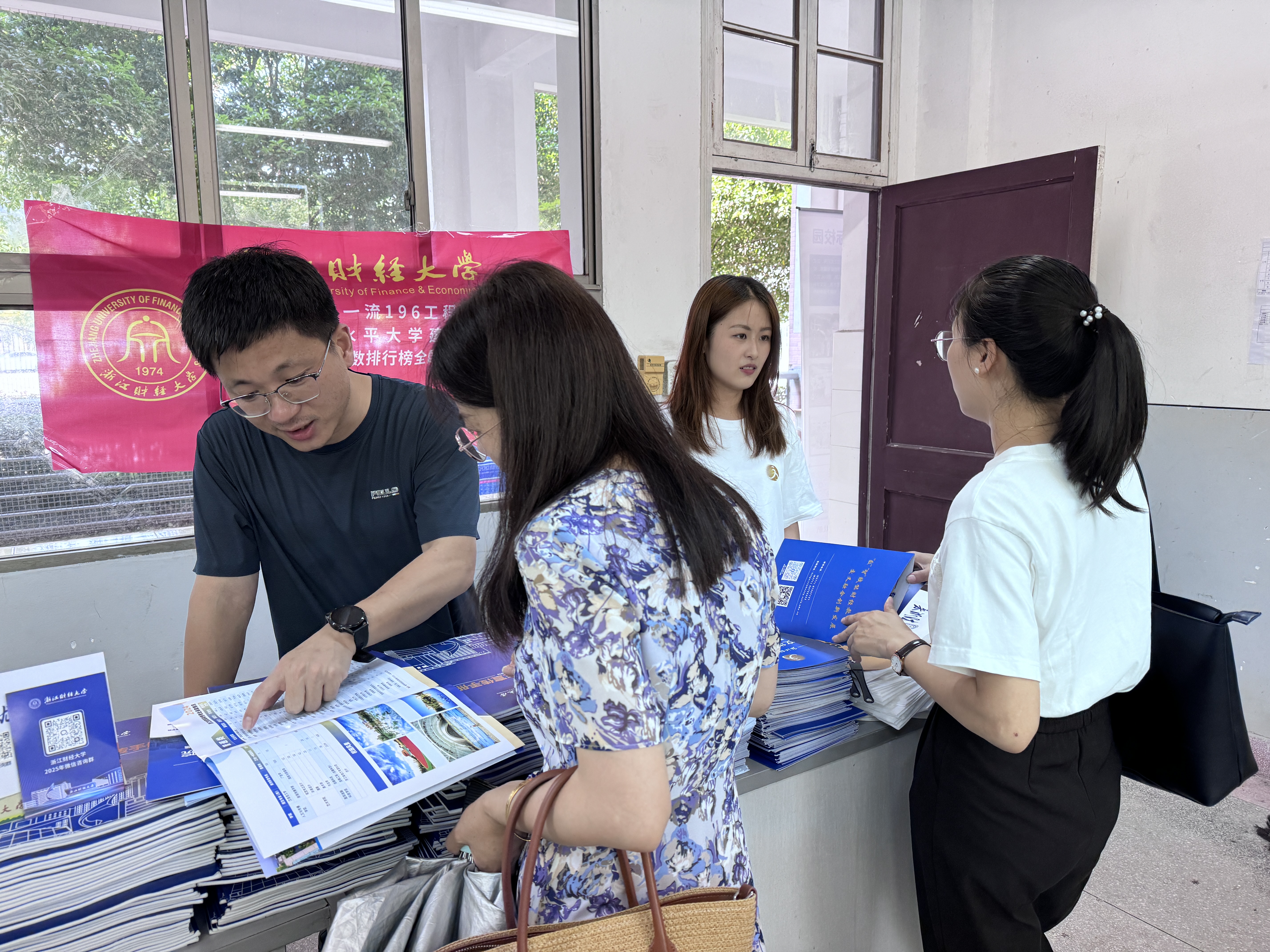 在招生宣传的现场,学院老师们向学生详细介绍了浙江财经大学的学科建设、师资力量、及就业前景等情况,现场的家长及考生咨询学校的招生政策、录取分数线等信息。咨询会上,学生们积极提问,老师们耐心解答,现场气氛热烈。