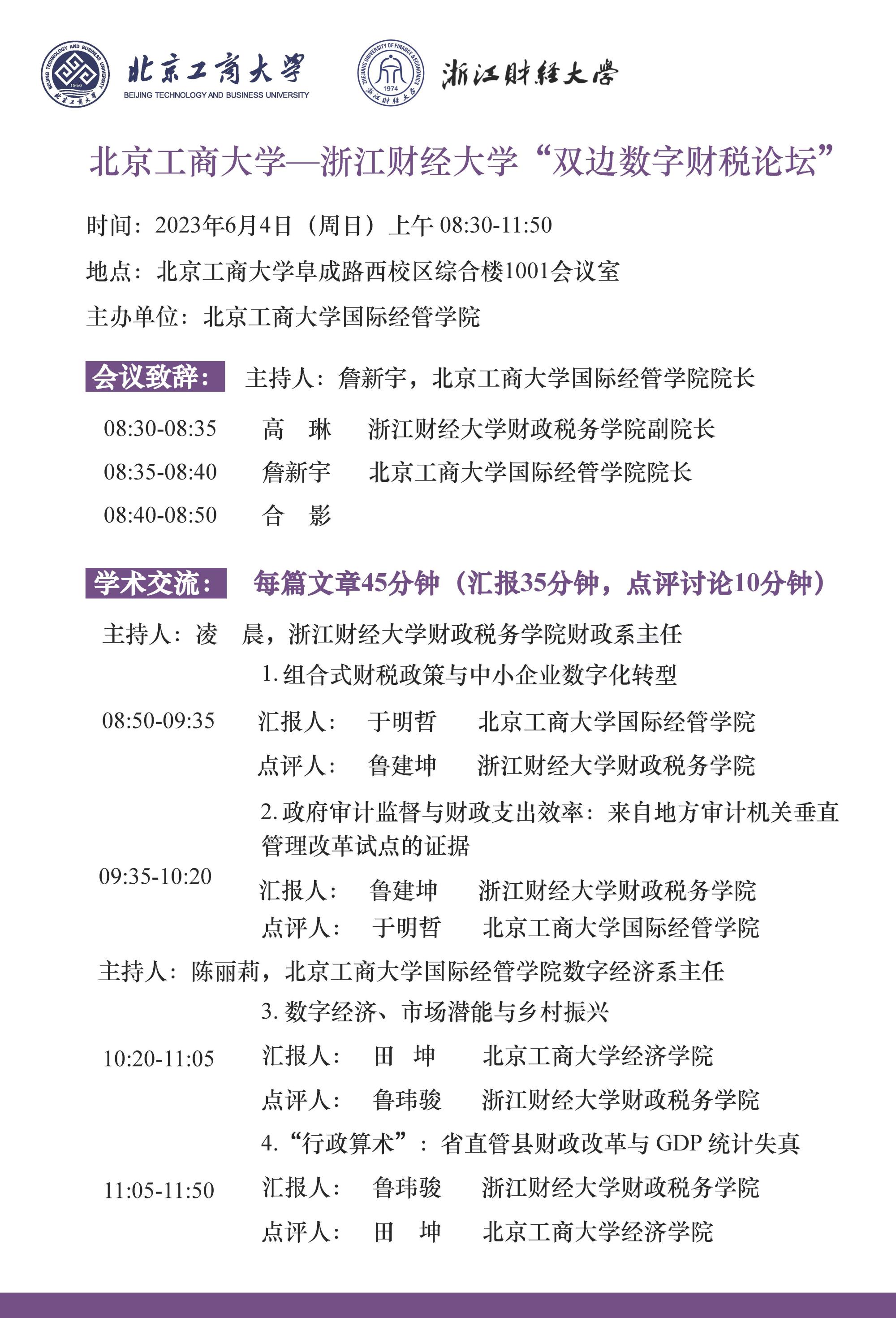 会议预告:北京工商大学—浙江财经大学“双边数字财税论坛”
