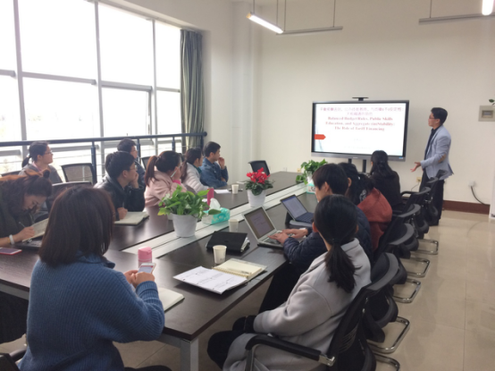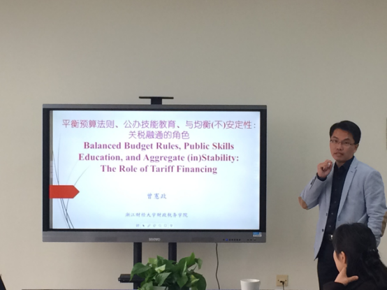 会上,曾宪政老师通过分析一个资源缺乏的小型开放经济(如台湾省等),提出了一个兼具“关税、固定替代弹性的生产技术、与公办技能教育外部性 ”的两部门动态一般均衡模型,并据以探讨宏观均衡动态的(不)安定性。