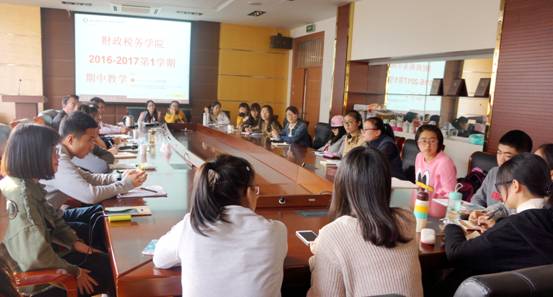 本学期期中教学检查会议在学院楼307召开,学院教学副院长司言武教授、本科教学督导组成员骆勤教授、葛夕良教授、教务管理办公室老师及CBA直播线上看