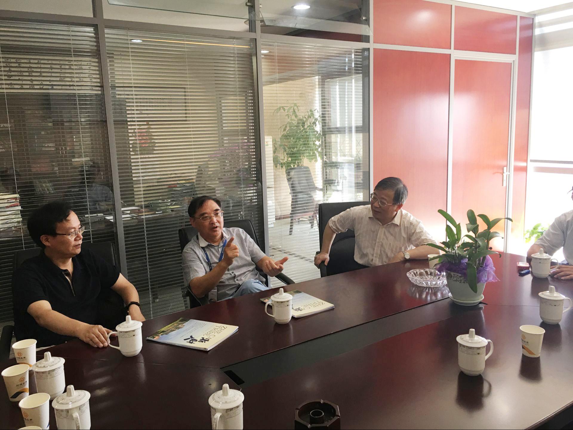 沈继宁、胡国华校友对钟晓敏校长一行顶着酷暑前来看望表示感谢,两位校友介绍了自己所在的财通证券的发展情况,畅谈了自己在母校的青葱岁月,对母校近几年取得成绩表示十分欣慰,并表示会在今后继续支持母校的各项工作,只要有母校有需要,将一如既往、竭尽所能的予以支持。