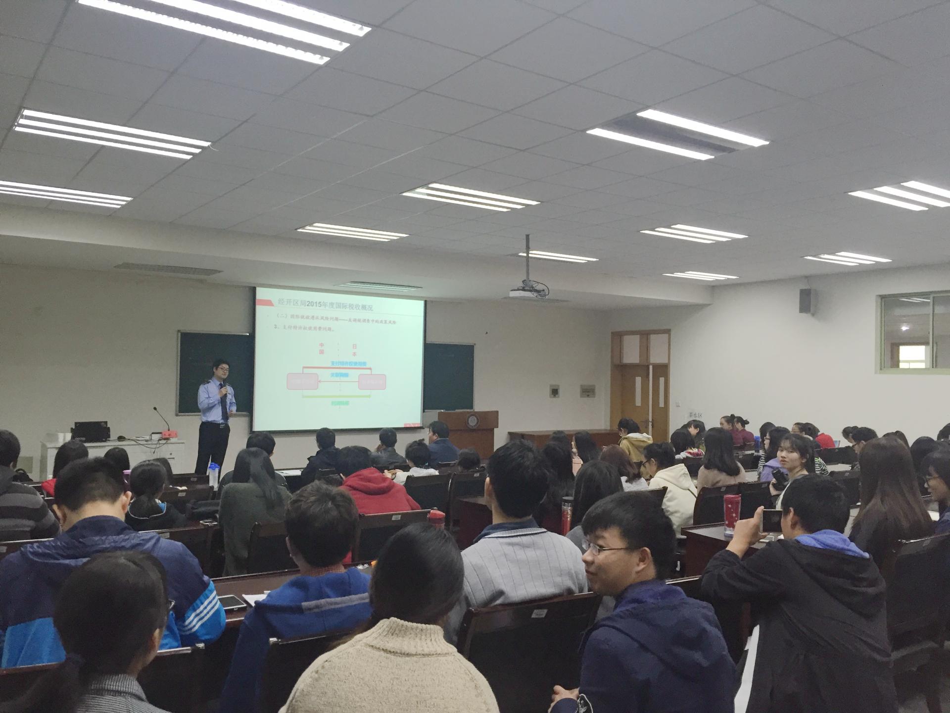 讲座伊始,王科长围绕G20/BEPS框架下的国际税收征管热点问题向在场同学介绍了特别纳税调整选案与调查实务。在其讲述过程中,王科长结合自身实践,以杭州下沙开发区上市企业的纳税选案为案例,为同学们深入浅出地阐述了国税局在执行反避税选案工作的四个做法:转让定价管理,受理预约定价安排,资本弱化、成本分摊,经开区局了解2015年度国际税收管理概况。紧接着,他从国际税收水源分析、征管实践及思路探索出发,以转让定价管理为核心,从转让定价管理遵从依据与重点选择的企业这两方面进行论述,并提出“资本密度性调整应被适用”这一观点。之后,讲座进入提问环节,王科长耐心、详细地解答了现场同学以及老师提出的问题。