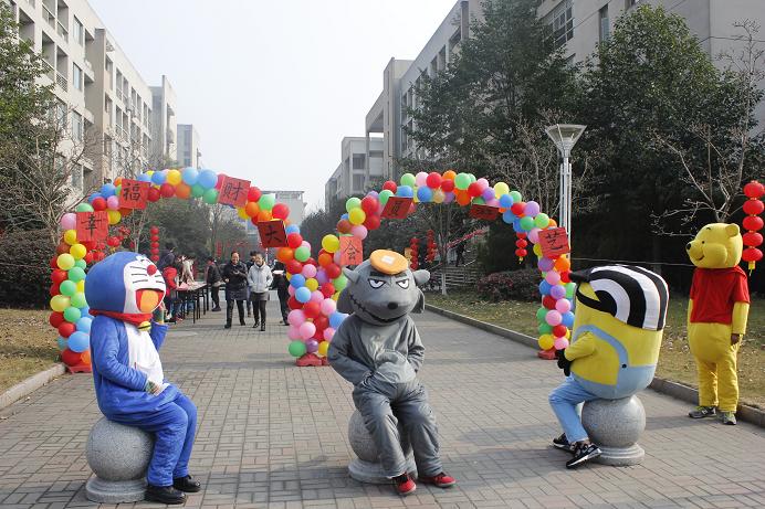 精心布置的气球拱门,上面标有“幸福财大,会员游艺”的活动主题。学院楼的出入口分别用红辣椒和红灯笼进行装饰,并在过道处悬挂了一个中国结,节日气氛浓烈,同时也寄予了CBA直播线上看