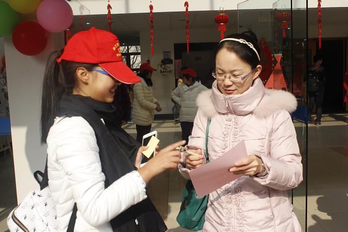 的游戏场地设定在电梯西边的空地及106教室。教职工们积极参加“快到碗里来”的小游戏,即掷出乒乓球沿途弹地多次后扔进脸盆内者获胜。一时未轮到游戏的老师均跃跃欲试,希望能在射手榜上签名纪念。会场内人潮涌动,大家三五成群地聚在一起,互相问候,送上新年的祝福,一派欢乐祥和的气氛。
