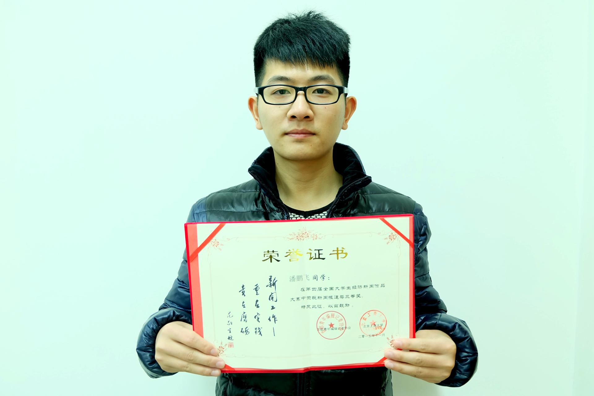 财经新闻专业潘鹏飞同学的参赛作品《谁将成为跨境电商的经营主体》获得“新闻报道类三等奖”,财经新闻系连续三年获得“优秀组织奖”。