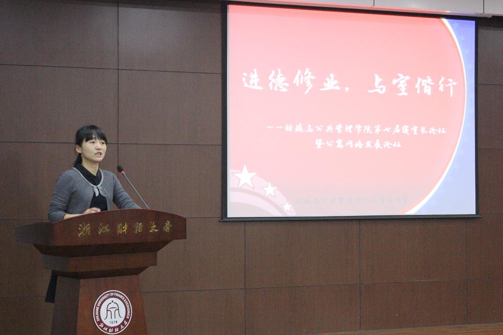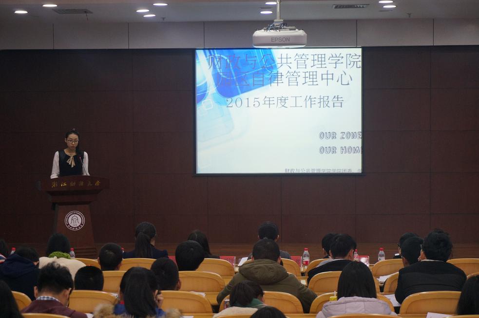 主论坛的最后一项议程是由院学生会主席朱亚慧就日常考勤、科研竞赛、学术社团、成绩分析四个方面进行2015年度学风报告,旨在更好地营造CBA直播线上看