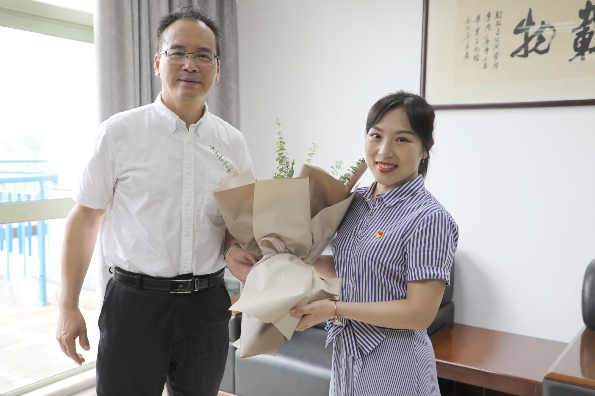 优秀教职工代表童幼雏老师,给她送去学校的关怀,并致以节日的问候和美好的祝福。
