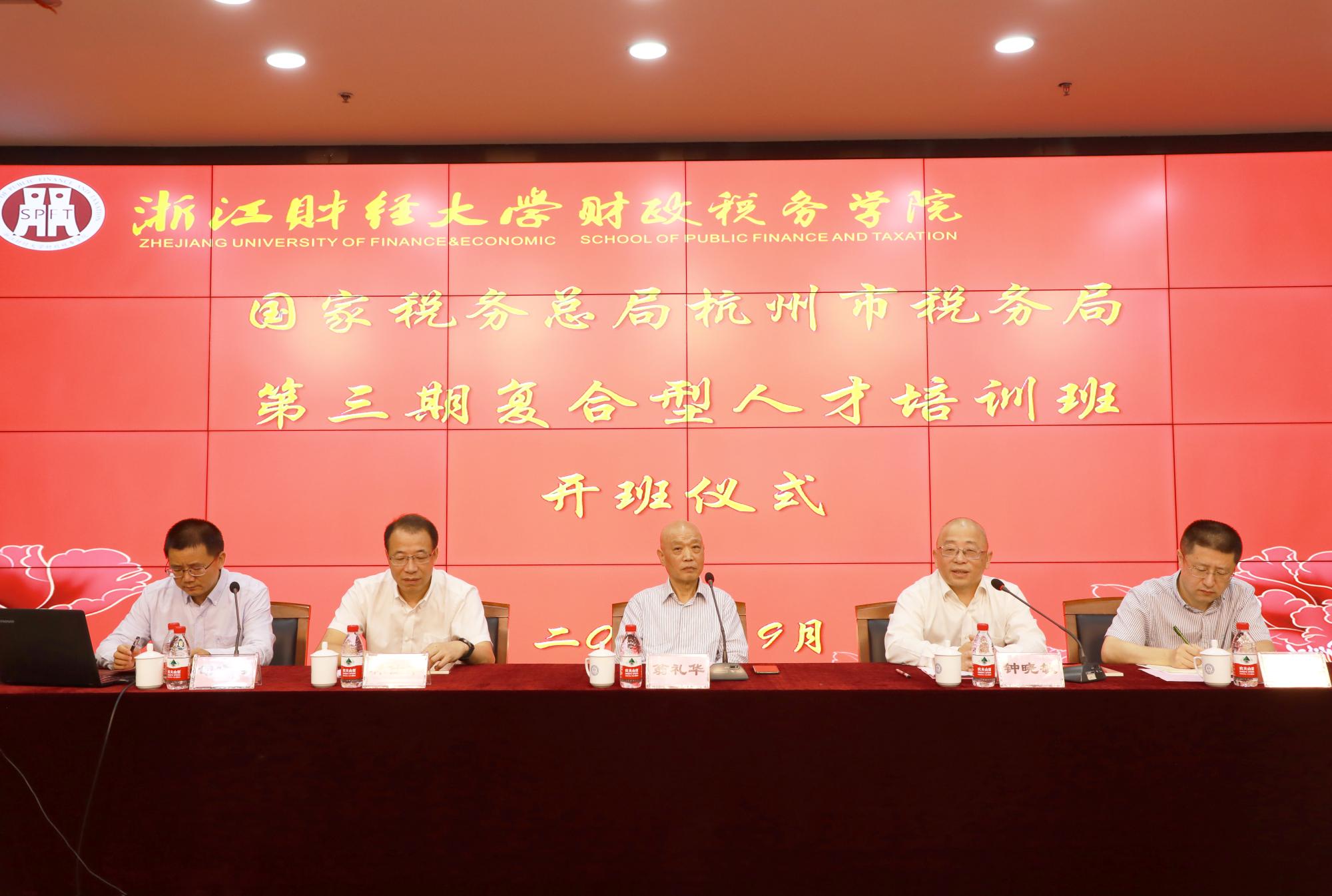 9月25日,国家税务总局杭州市税务局第三期复合型人才培训班正式开班。浙江省财政厅原厅长翁礼华,浙江财经大学校长钟晓敏,杭州市税务局党委副书记、副局长林仕华,杭州市税务局教育处处长张宏,CBA直播线上看