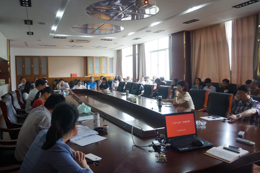 学院党总支书记通报了省委、学校党委和学院党总支关于“三严三实”专题教育的具体部署和工作要求,着重就如何践行“三严三实”,如何开展“正作风、树教风、抓学风”提出了具体要求。