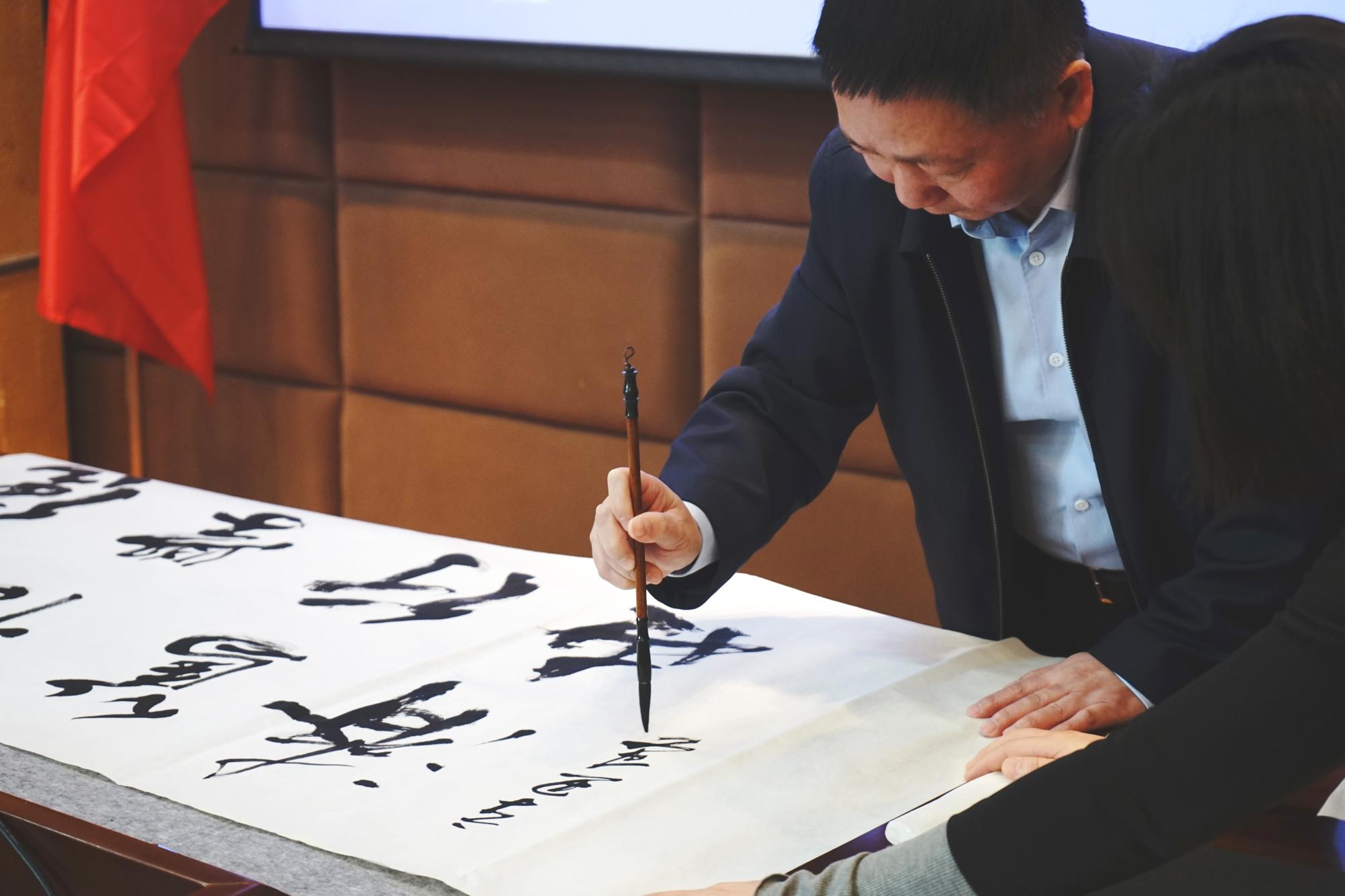 最后,杨灿明校长挥笔题写了CBA直播线上看