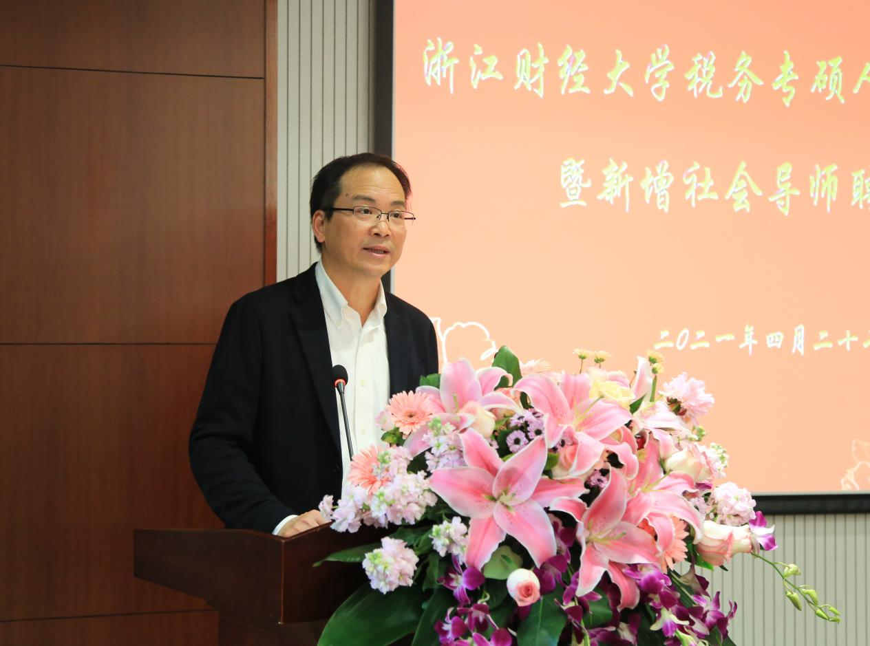 校党委副书记余建森在致辞中指出,我校注重专业学位研究生专业理论知识和实践应用能力的协同培养,积极创造条件开拓学生国际视野。面对新经济业务不断涌现的挑战以及经济社会发展对税务人才的新需求,浙江财经大学与时俱进调整专业培养方案,着力培养高级税务应用型人才,期待各位专家发表真知灼见。
