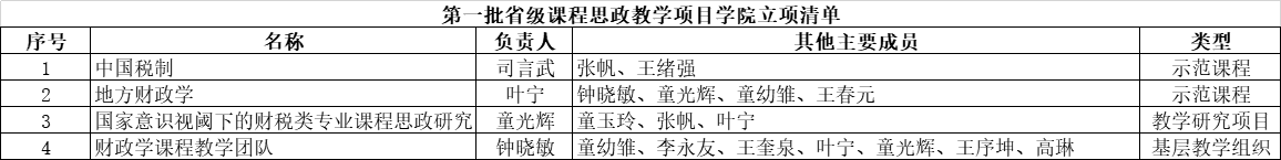 近日,省教育厅公布了第一批省级课程思政教学项目建设立项名单,学院《中国税制》等4个项目榜上有名。其中,省级课程思政示范课程2项、课程思政教学研究项目1项、课程思政示范基层教学组织1项,这是CBA直播线上看
