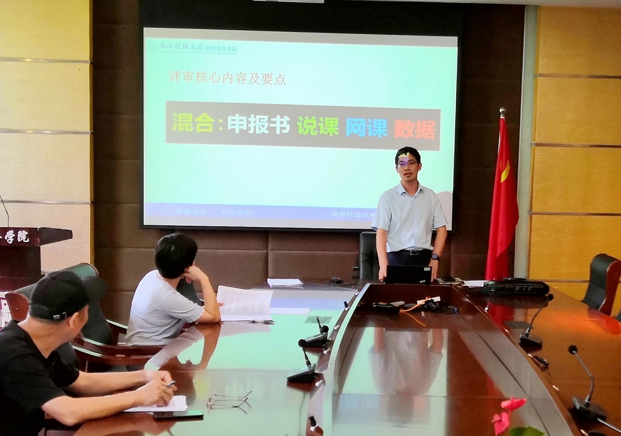 举办省一流课程(含课程思政)申报专题辅导,学院副院长、《中国税制》省级混合一流课程负责人张帆作题为“线上、线下混合一流课程建设经验分享”的专题辅导。