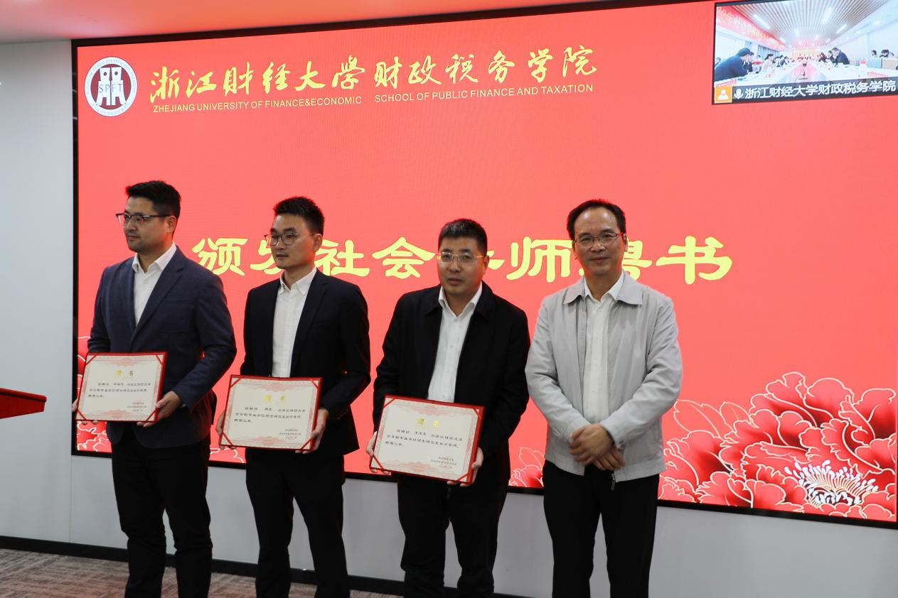 浙江财经大学党委副书记余建森为新聘社会导师颁发聘书