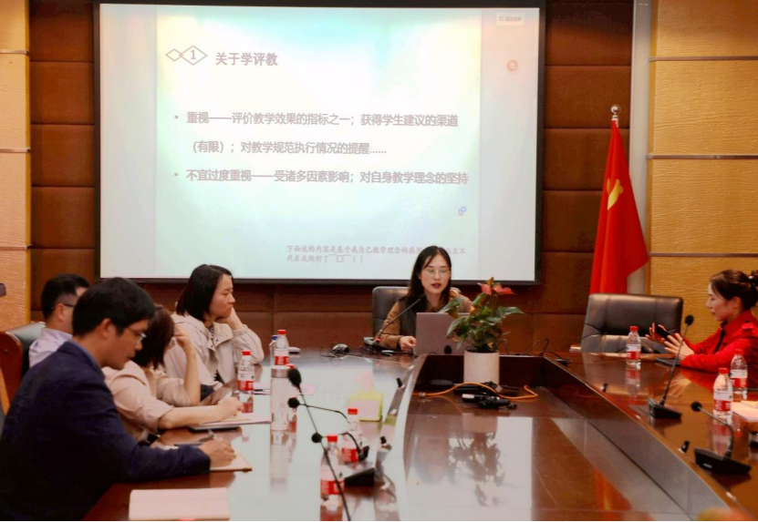 张朝阳老师重点分享了自己的学评教成绩如何一步一步从学院排名靠后到中游再到领先的历程。她认为老师要对学生多一些共情意识和服务意识,要站在学生的角度思考学生需要什么和我能提供什么。