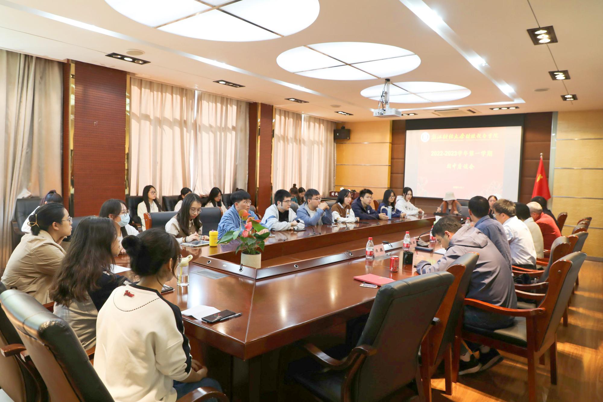 在学院楼307会议室召开了本科生期中教学座谈会,本次会议由教学副院长张帆主持。院长司言武,党委副书记徐丽玲,财政系主任凌晨,本科教学督导组成员王序坤、曹爱民,教学秘书方梦澜出席,全体教学信息员参加会议。