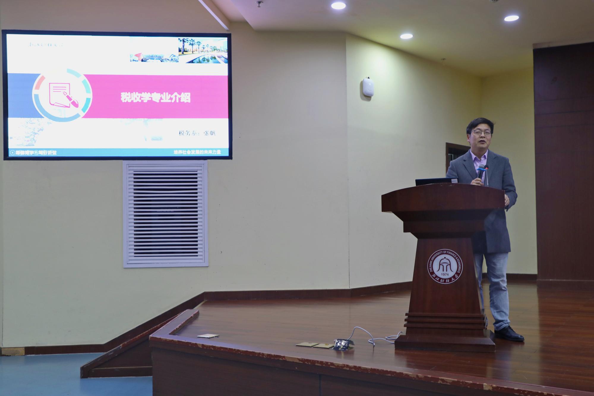 教学副院长张帆主持,财政系主任凌晨、税务系副主任黄冠豪、教学秘书方梦澜出席,2021级财政学类全体学生参会。