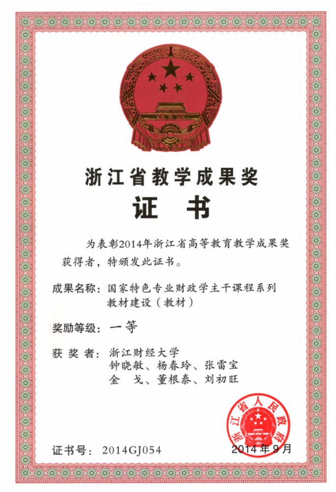 团队始终坚持教学中心地位,专业建设成效显著。财政学专业为国家综合改革试点专业、国家一流本科专业建设点;核心课程《财政学》教师团队获批国家级教学团队;团队拥有国家级一流课程2门次,国家级精品在线开放课程1门,各类省级金课5门;出版《财政学》《地方财政学》等一批国家级规划教材、国家级精品课程教材和省新形态教材,在财经类高校得到广泛使用。团队秉承黄大年“敢为人先、开拓创新”之精神,积极引领教学改革,本科生综合导师制、课程教材建设、融合式人才培养等改革项目共获浙江省教学成果一等奖3项,二等奖2项。