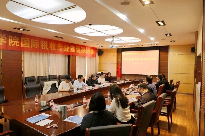 国际税收专业建设安排进行点评与提出相关建议,学院副院长张帆、学院副院长高琳、司言武教授,以及张旭、郑家兴、郭敏捷、张兵兵老师出席研讨会。