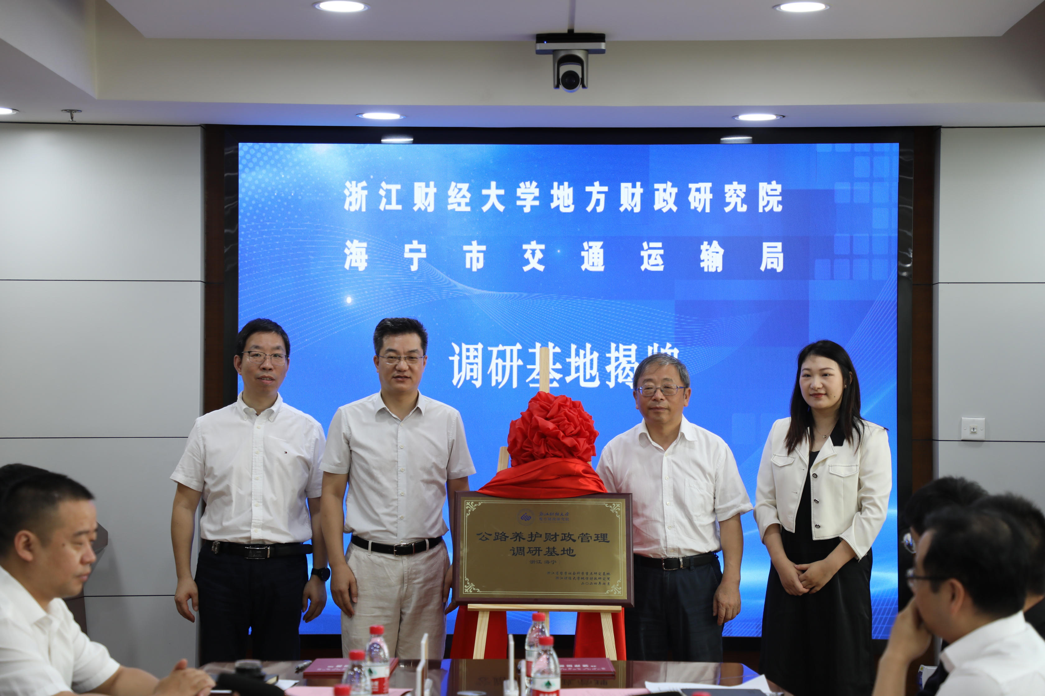 浙江财经大学原校长、地方财政研究院院长钟晓敏,海宁市交通运输局局长钱盛辉,海宁市委宣传部副部长、社科联主席许笑云,海宁市财政局副局长高迪共同为调研基地揭牌。