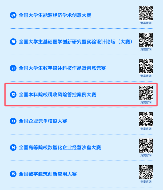 近日,高校教师发展工作室报道央媒调查发现大学“水赛”泛滥的文章。为积极引导学生参与含金量高的权威竞赛,文章还特意附上了教育部认可的竞赛目录,全国本科院校税收风险管控案例大赛位列其中。