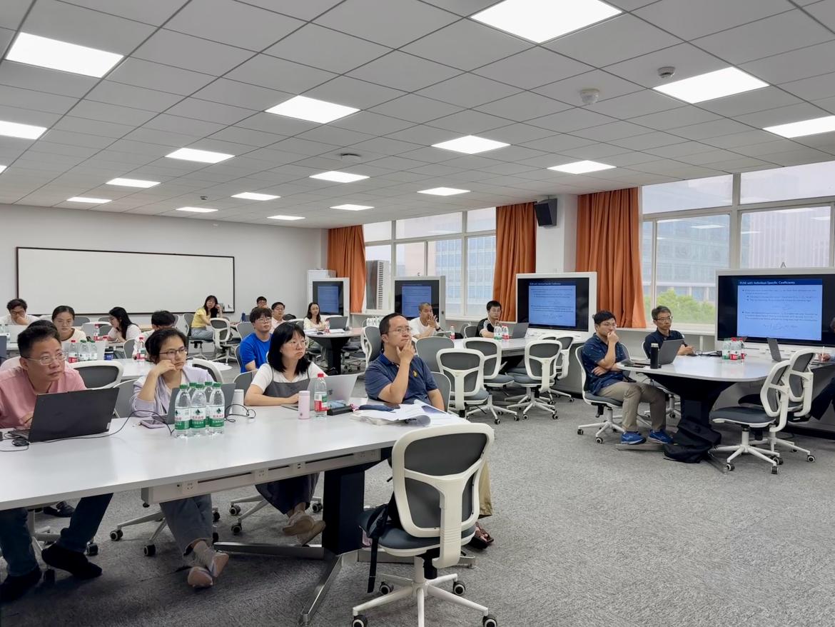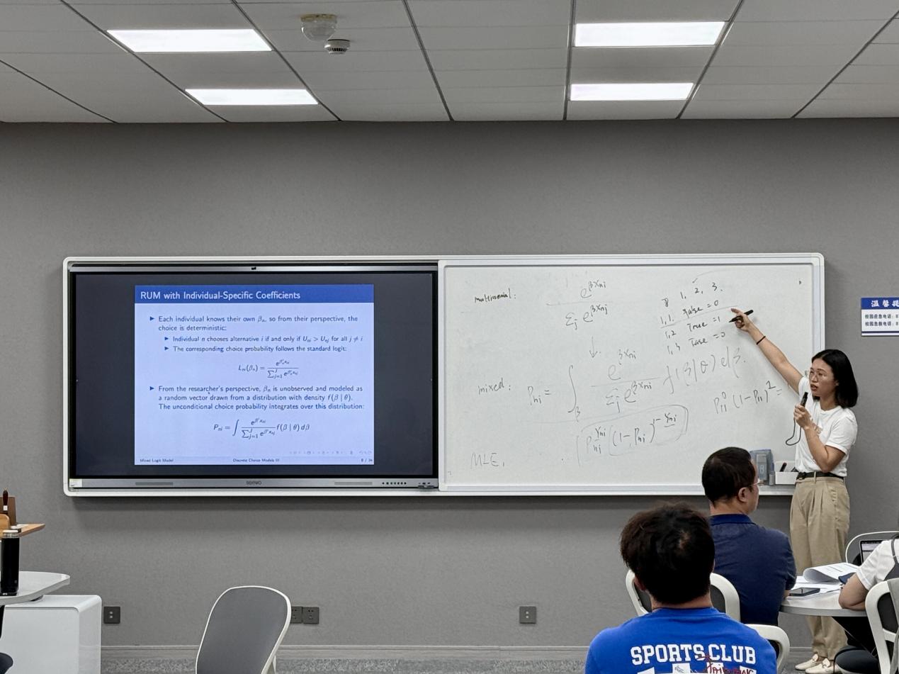 陈燕萍老师结合自己在美国的研究经验,深入浅出地解析了如何通过结构模型进行政策反事实分析,为学员提供了全新的研究视角。在为期两周的课程中,教学内容循序渐进、由浅入深。课程首先系统梳理结构模型与简约形式模型的本质区别,夯实学员理论基础;随后重点讲授最大似然估计(MLE)和广义矩估计(GMM)等核心计量方法及其模拟实现。在应用模块,课程围绕静态离散选择模型展开深入讲解,涵盖基础logit模型、nestedlogit模型到随机系数模型等进阶内容,并着重以BLP框架为典型案例,剖析异质性需求估计的实际应用。课程后半程转向动态分析领域,不仅详解Rust模型和Hotz-Miller估计方法等动态离散选择模型的核心技术,还拓展至生命周期模型和社会互动模型等前沿研究方向。