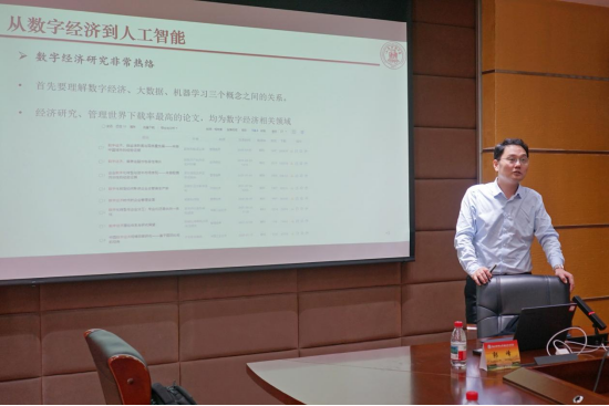 郭峰教授长期深耕数字经济与数字金融、机器学习与大数据分析领域,具有深厚的学术积淀与丰富的教学探索实践经验。讲座中,他从数字经济到人工智能的发展演进切入,系统阐释了数字经济、大数据与机器学习的内在关联。他以自身转型历程为例,分享个人AI学习与科研经验,生动展现了从编程入门到组建学术团队开展跨学科研究的全过程。同时,他展示了团队在学生培养中实现教学相长的实践成效。