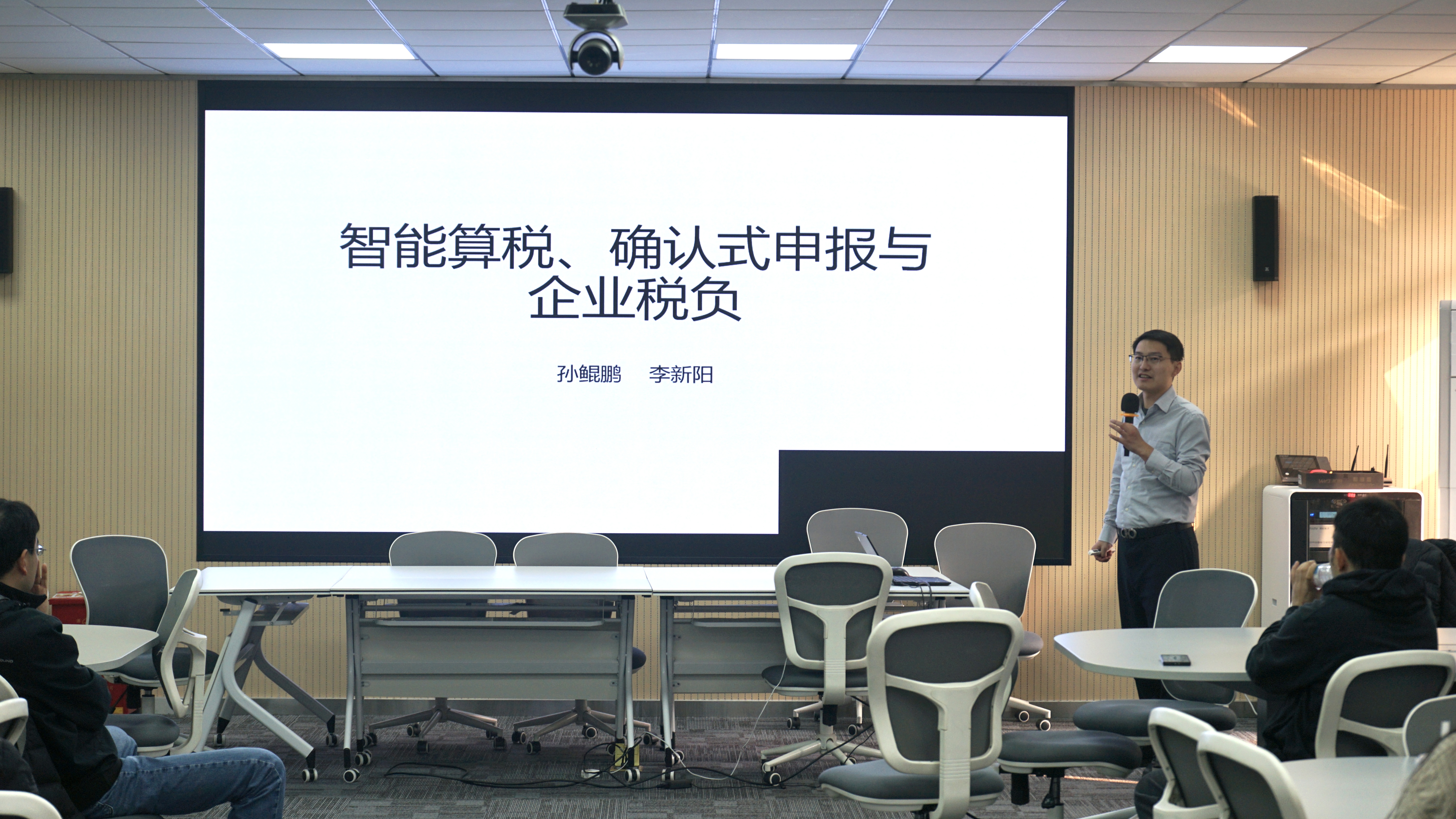 副院长孙鲲鹏教授担任主讲人,围绕《智能算税、确认式申报与企业税负》主题展开深度解析。孙教授作为中组部国家高层次人才计划入选者,同时具有清华大学经管学院会计学专业背景及北京市财政局财源建设处挂职副处长经历,是兼具深厚理论素养与丰富实务经验的复合型专家。他长期深耕数字财税领域,主持国家级课题10余项,在《经济研究》《管理世界》等权威期刊发表学术成果30余篇,其政策建议多次获得中央领导批示。
