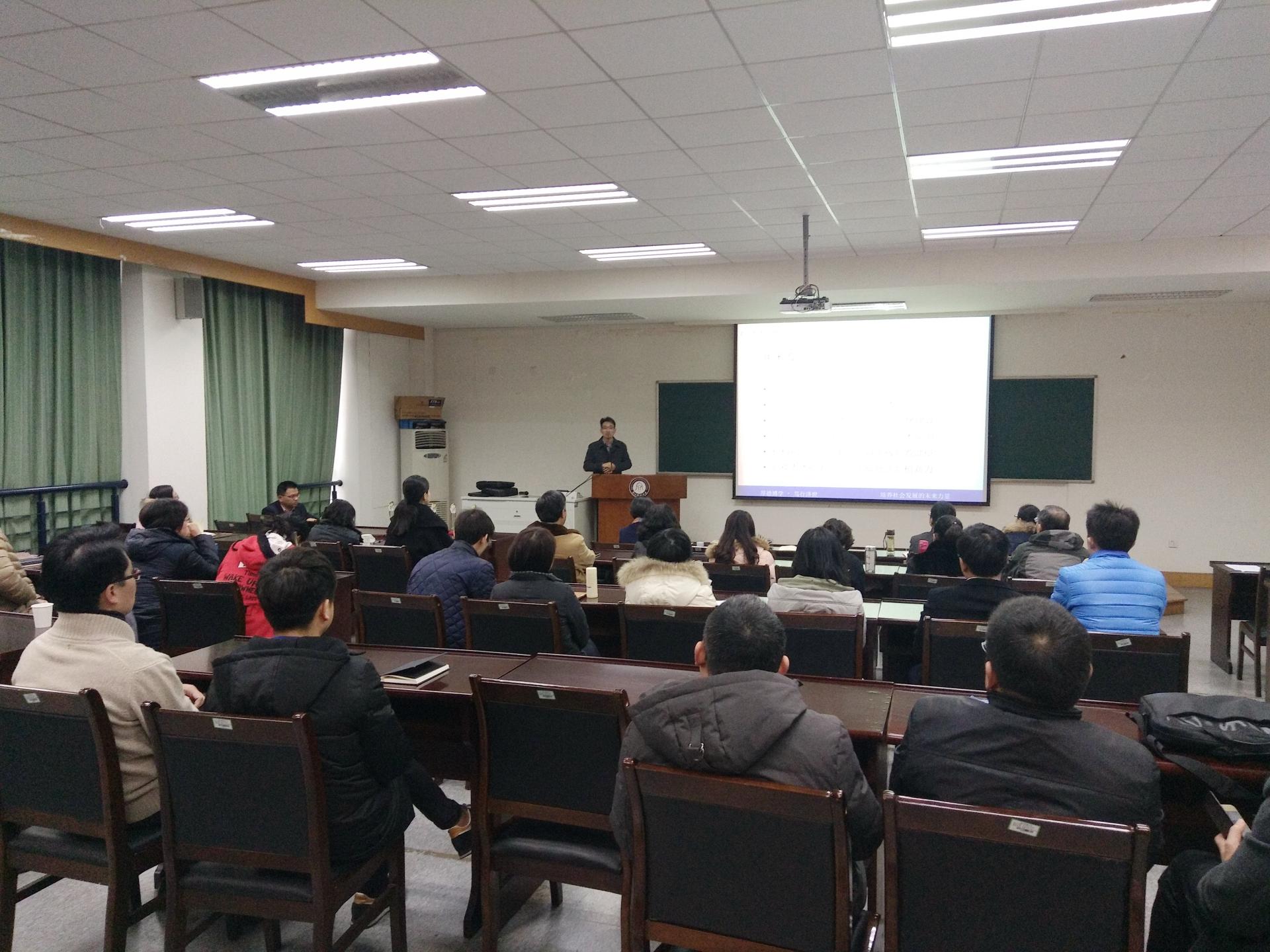 会议分两阶段进行,第一阶段为年底工作总结会议。院长李永友做开场发言。他简要回顾了学院一年来的主要工作,并分析了学院面临的困境及不足,以及基于不足的几点思考。继而围绕2017年人才培养方案制定、推进学院文化建设、建设学术平台、组建学术研究团队、推进教学团队建设、教师分类成长计划等工作,做了重点阐述。接下来,学院各系主任、专硕负责人、督导组组长、各办公室负责人,一一上台,通过PPT展示,对各自2016年所在岗位工作做了简要总结,并对2017年工作进行了展望。