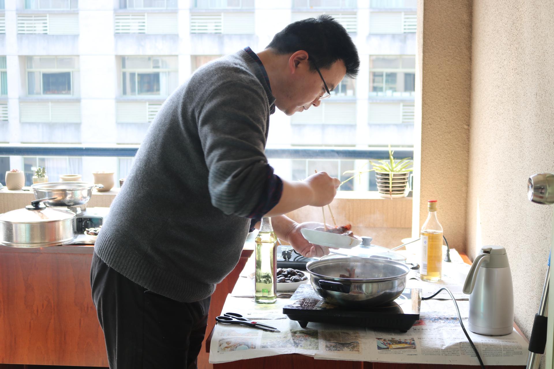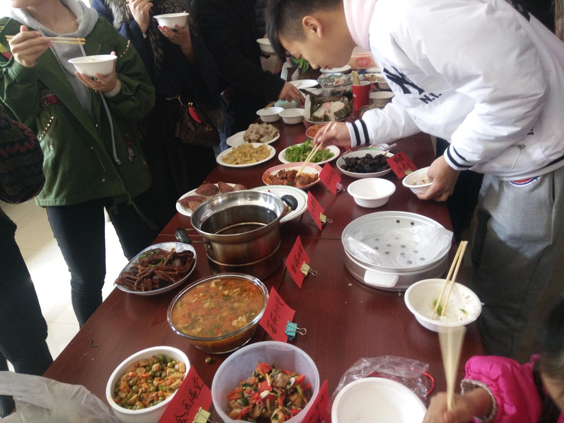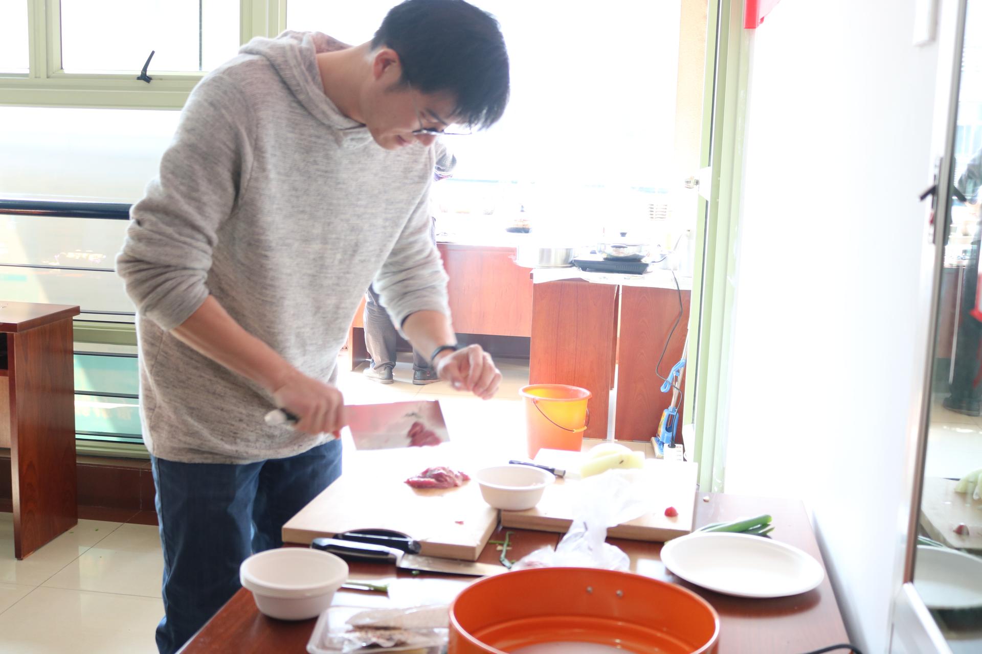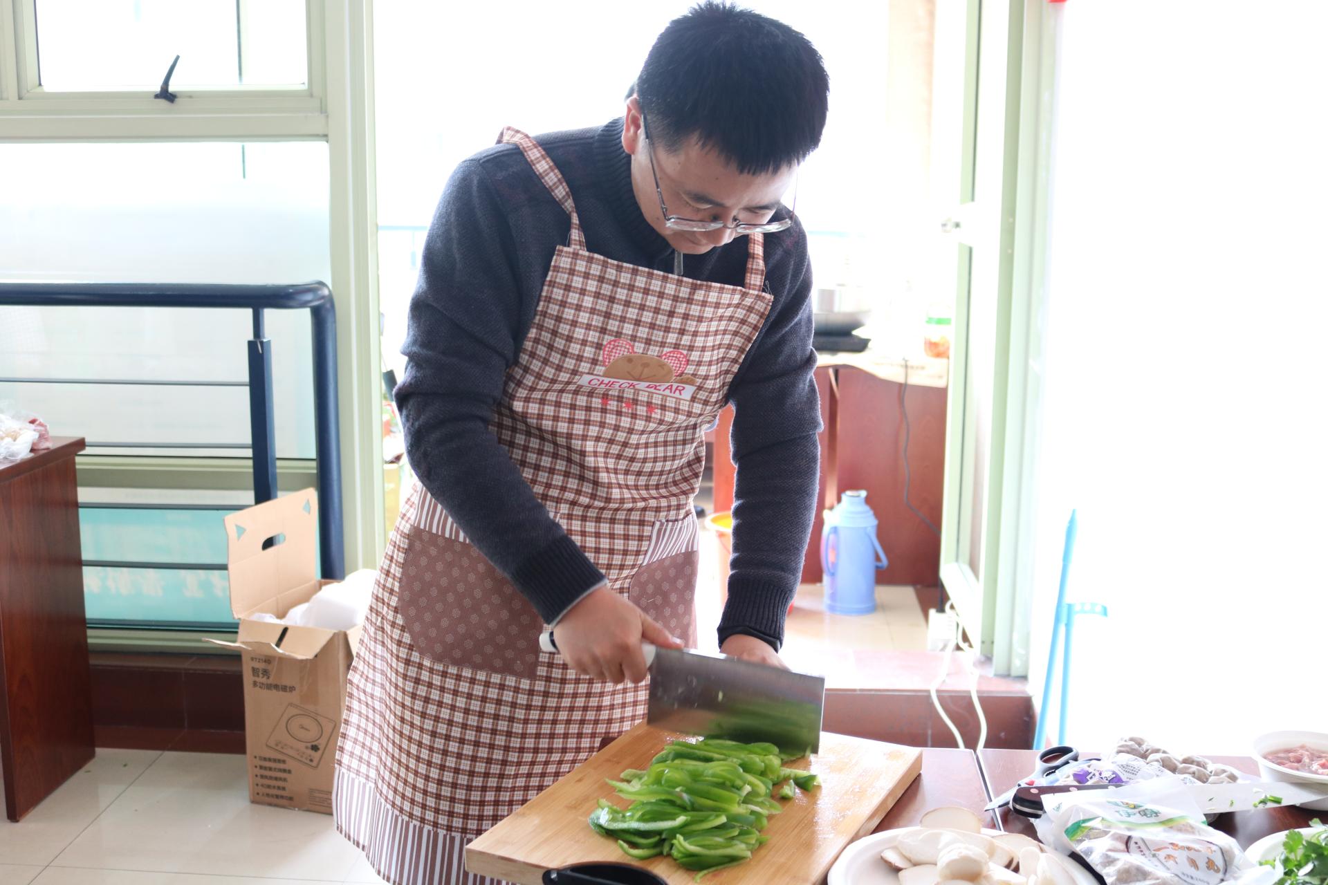 活动开始前,男老师们和同学们精心布置现场,准备各类食材,大家洗菜、洗米……分工合作,忙得不亦乐乎。炒制现场,平日忙于教学科研的男老师们大展身手,光看菜名就已经让人垂涎三尺,有“金玉满堂”、“沃野翡翠”、“相(湘)遇(鱼)财税”、“蛹者斗恶龙”、“风花雪月”等二十几道大菜。