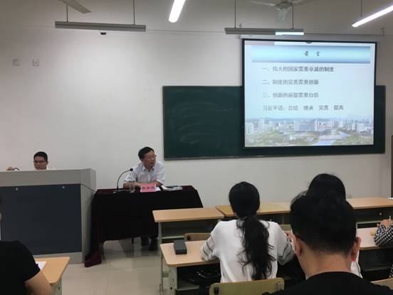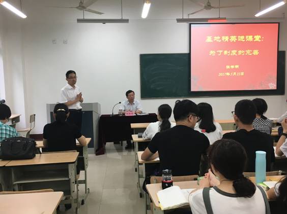 5月23日,在1号学院楼104教室,“基地精英进课堂”系列讲座又迎来了一位嘉宾,浙江省温岭市人大常委会原党组书记、主任张学明应邀前来我校讲学,并作了题为《为了制度的完善》的学术报告。本次讲座活动由CBA直播线上看