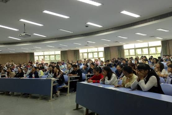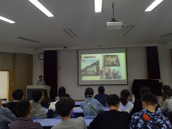 最后,国外生活经验丰富的胡芳老师用自己的亲身经历告诉大家要走出去,去体验一种更加不一样的人生。胡老师言语幽默,多彩的国外体验使得同学们不时发出感叹。