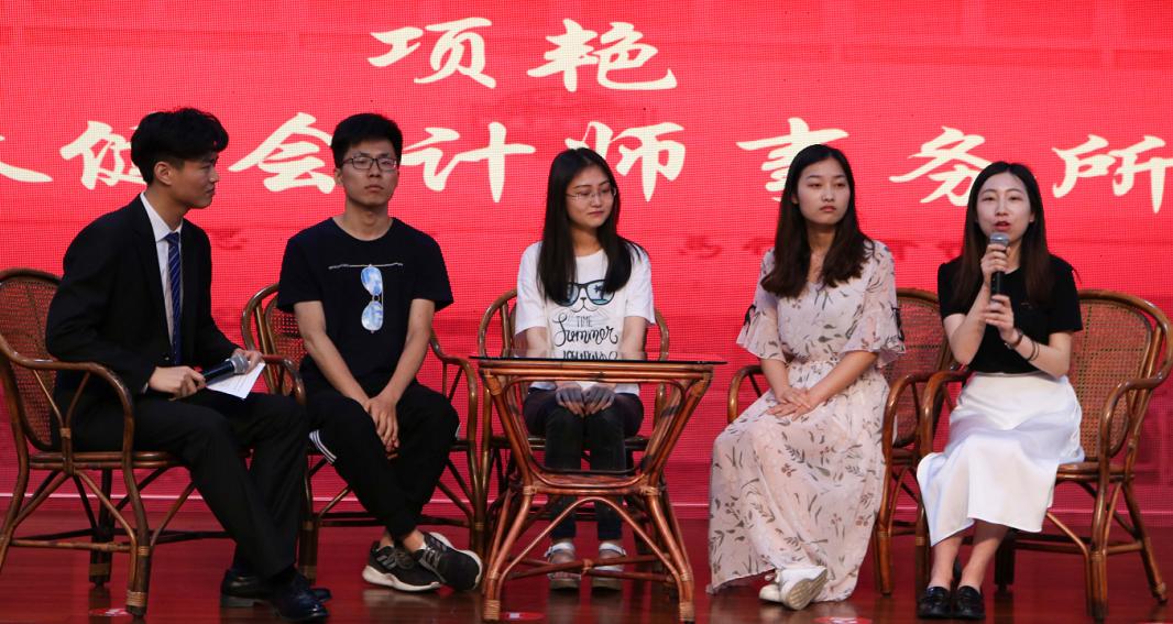 接着,以访谈的方式,于天健会计事务所就职的项艳、考入慈溪市国税局的徐金贝、考入上海财经大学金融专硕的裘文超以及考入加州大学洛杉矶分校(世界著名公立研究型大学)的李倩与同学们分享考公考研的备考阶段注意事项以及心态的调整等方面内容。