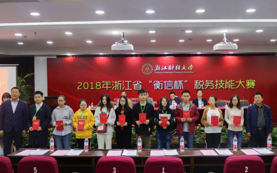 10月27日,2018年浙江省“衡信杯”税务技能大赛在浙江财经大学成功举办。浙江财经大学代表队获得大赛第一名。参加本次大赛的是从上千名选手中通过逐级竞争、选拔出来的63名优秀选手组成的21支高校代表队。其中本科组10支,高职组11支。