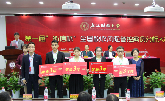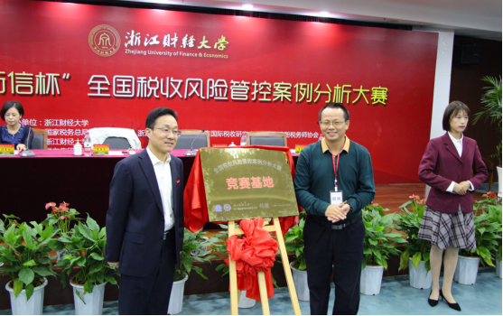 在闭幕式上,浙江财经大学举行了全国税收风险管控案例分析大赛竞赛基地揭牌仪式,大赛办公室永久落户在浙江财经大学。浙江财经大学党委副书记卢新波,衡信教育科技有限公司总经理李高齐共同为基地揭牌。卢新波副书记表示,作为主办单位,浙江财经大学将认真总结这次大赛的好经验、好做法,积极争取将此大赛早日列入教育部门认可的学科竞赛项目,同时也希望大家以竞赛为契机,秉着以赛促教、以赛促学的原则,积极推进教学改革,完善培养方案,创新教学手段和方法,不断提高财税专业及其相关专业的教育教学质量。