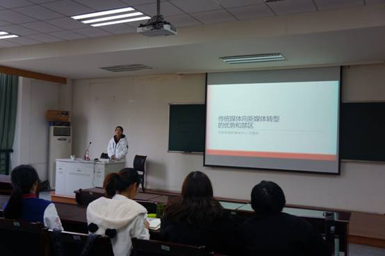 的“基地精英进课堂”活动在学院楼106如期进行。《市场导报》的新媒体中心总监万晓玲老师围绕“传统媒体向新媒体转型的优势和禁区”的主题进行了讲解。CBA直播线上看
