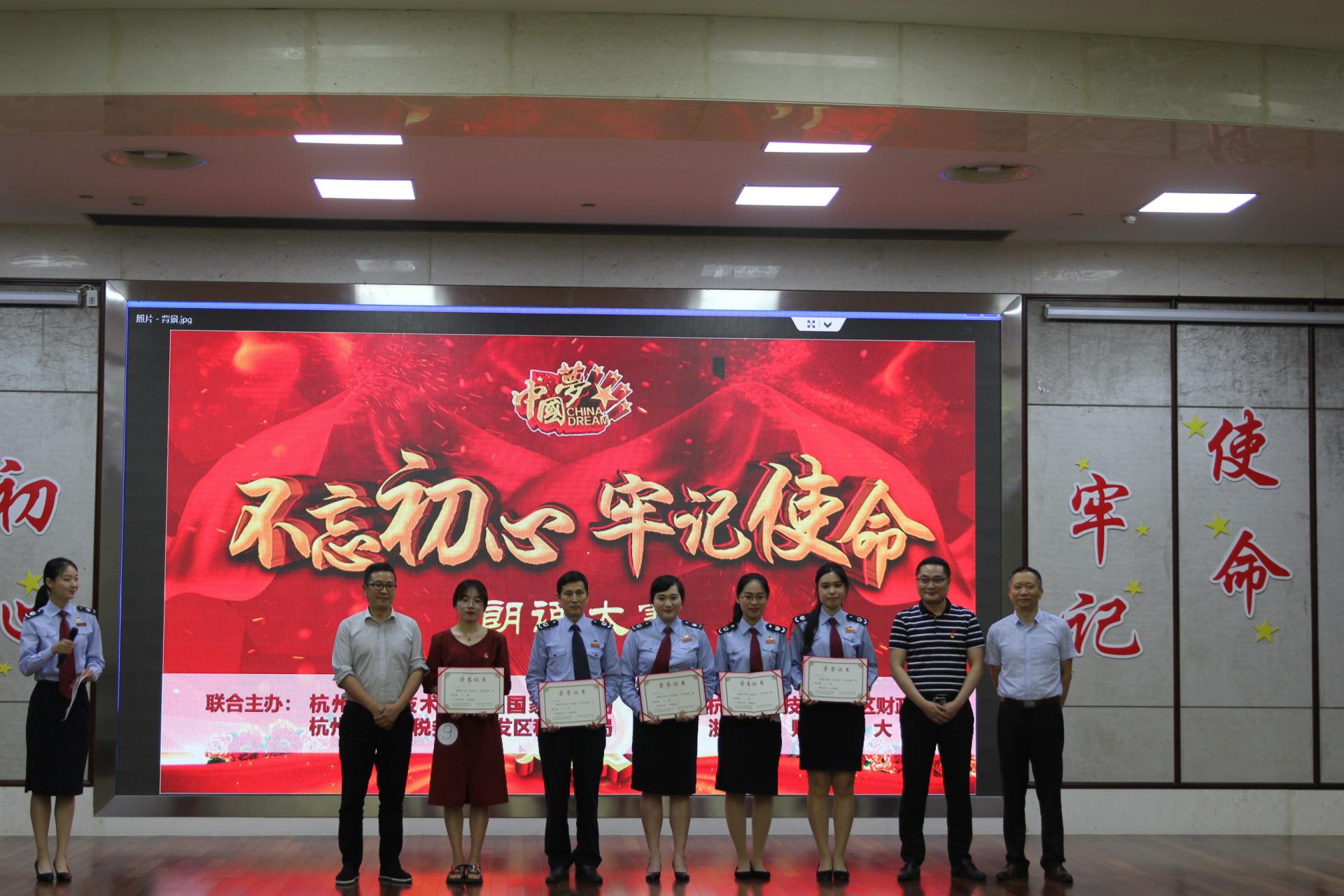 与杭州经济技术开发区国家税务局、杭州经济技术开发区财政局、杭州市地方税务局开发区税务分局联合举办了主题为“不忘初心·牢记使命”的党日活动,活动以诗歌朗诵的形式进行。区局领导班子成员、全系统干部职工、CBA直播线上看