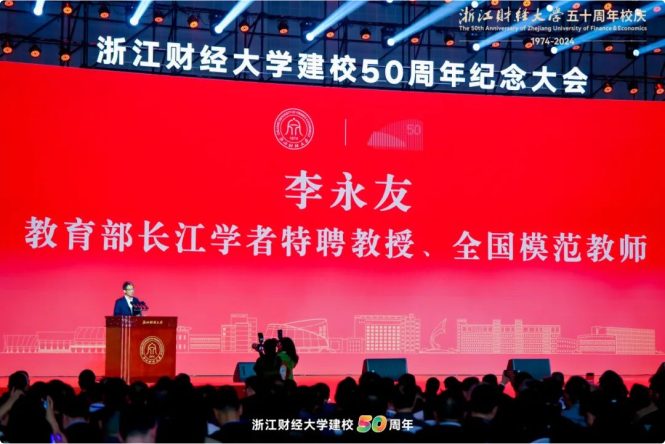 2号下午,“财这50年”财政学专业建设50周年庆祝大会在学术第一报告厅举行。校党委副书记、校长魏江出席并代表学校致辞。他表示,财政专业50年的建设成就辉煌,为经济社会发展培养了大批优秀人才,期待在未来持续共同打造校友与浙财发展的“命运共同体”。他指出,学校正在深入实施新财经战略,希望财政税务学院秉承优良传统,为党育⼈,为国育才,深化教育改革,为建设具有“浙财辨识度”的财政学科体系而努力奋斗!
