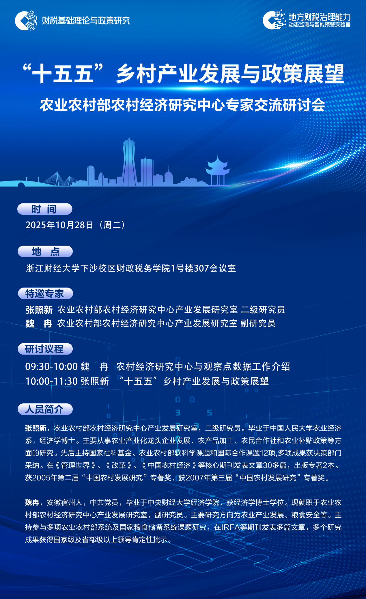 【预告】农业农村部农村经济研究中心专家交流研讨会