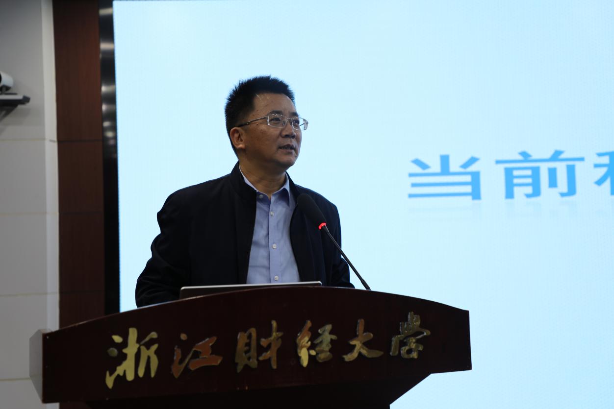 接着,浙江财经大学现代税务师学院院长司言武教授从国家发展的战略高度对当前税收改革热点进行分析。他从二十届四中全会切入,带领大家详细剖析了从公报中解读出的税收热点方向。他着重围绕国家高质量发展、社会公平和市场统一这一“铁三角”核心理念,阐述了税制改革的方向,并具体介绍了从不同税种的视角来看税收政策当前的热点、难点与改进方向。最后,司言武也提出了许多建设性的政策建议,例如房产税作为有益税,可以考虑将其作为地方的主体税种。