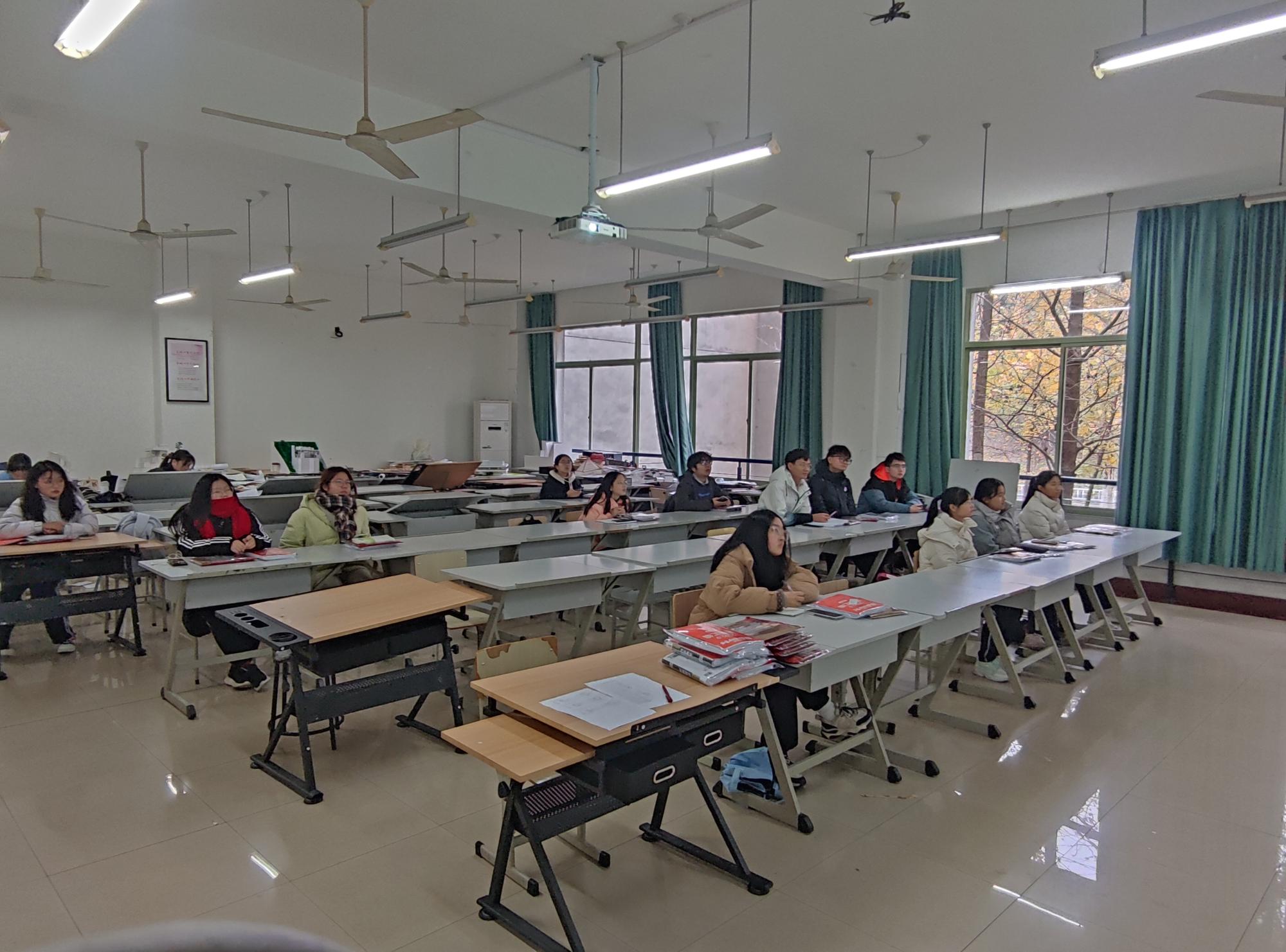 于学院楼104举行了红鹄益站之大学英语四级培训活动。2020级吴锦婷作为此次活动主讲人向大家分享英语技能提升相关经验。